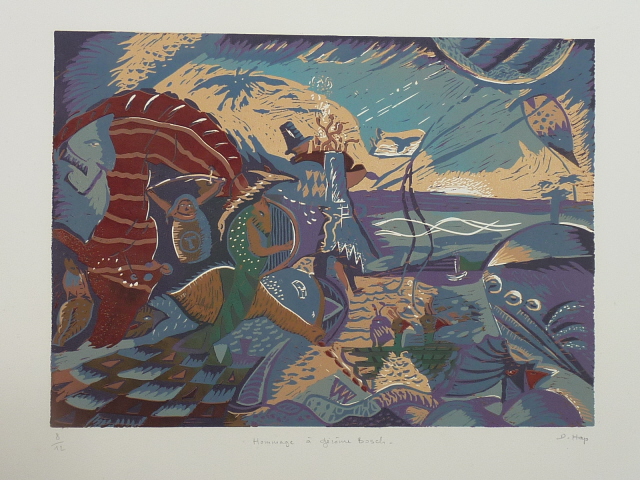 « Hommage à J.Bosch » – Linogravure en couleurs