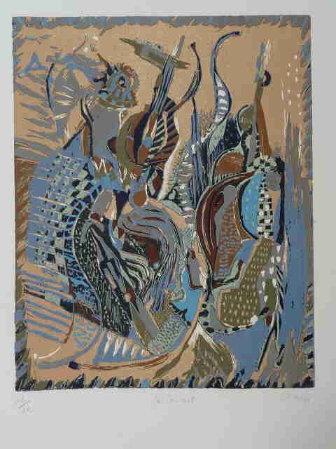 « le concert » – Linogravure en couleurs