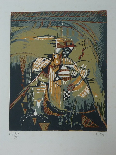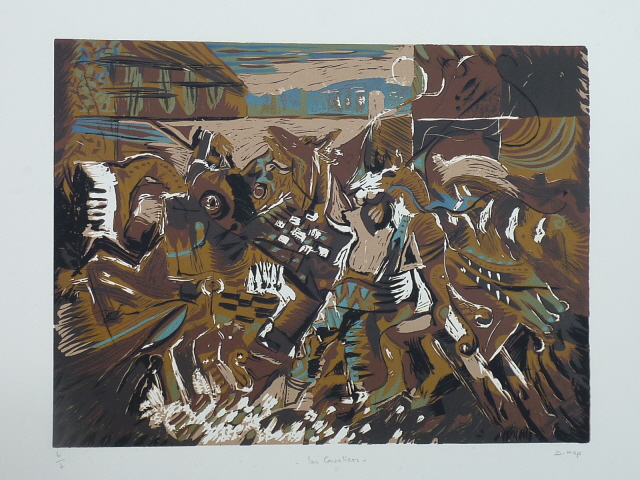 « Les cavaliers » – Linogravure en couleurs
